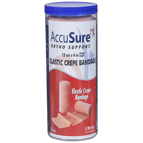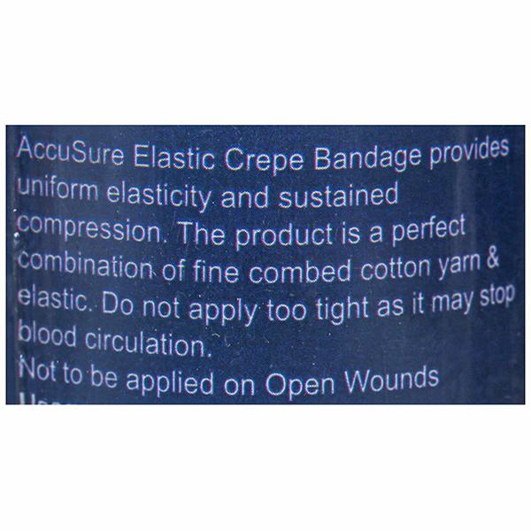 AccuSure Ortho Support Elastic Crepe Bandage is a perfect combination of fine-combed cotton yarn & elastic that provides uniform elasticity and sustained compression. It helps to relieve sprain & strain in joints and Sports injuries. It is also used in post-cast removal.