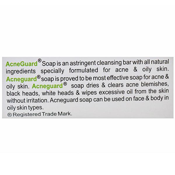 AcneGuard Soap is an astringent cleansing bar with all natural ingredients specially formulated that dries & clears acne blemishes, blackheads, whiteheads & wipes excessive oil from the skin without irritation. Acneguard soap can be used on the face & body in oily skin types.