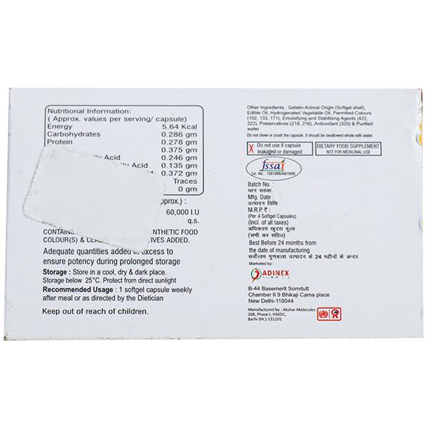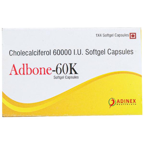 Each soft gel Adbone 60K Capsule contains Cholecalciferol 60000 IU.