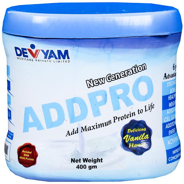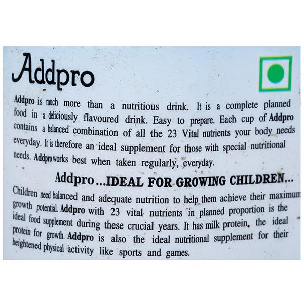 In growing children, It helps them achieve maximum growth potential and heightened physical activity like sports and games. It provides power, growth, and energy to keep growing children active. The tasty vanilla flavour of Addpro Powder makes it delicious to consume.
