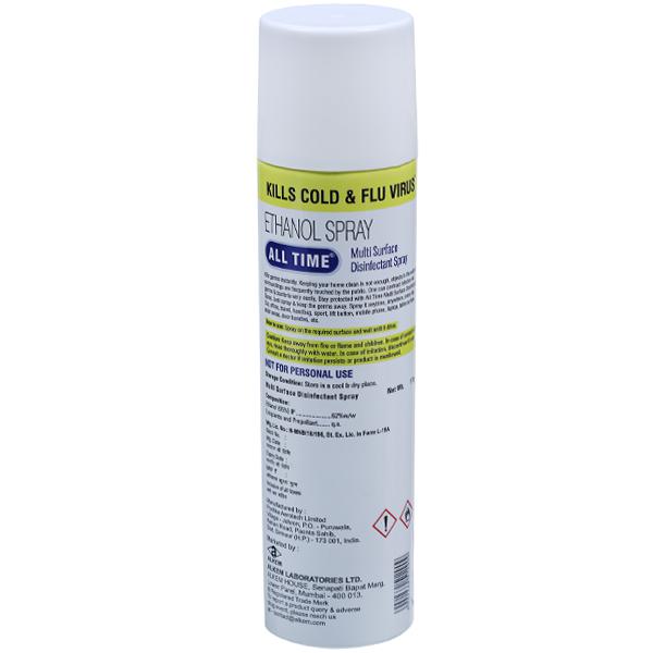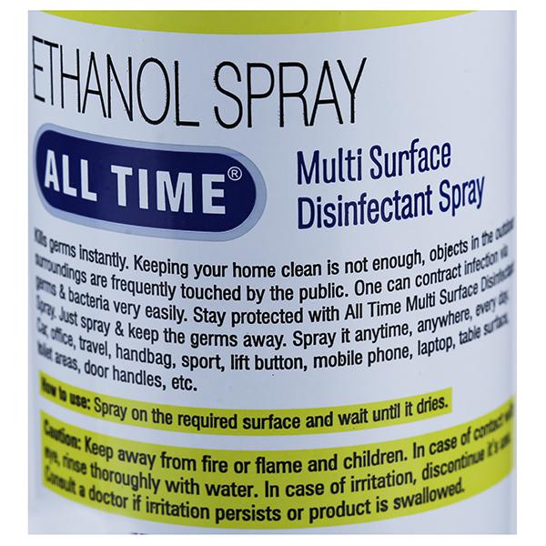 All Time Multi Surface Disinfectant Spray kills 99.9% germs, disinfects and cleans the furniture, glass, metal & car interiors.