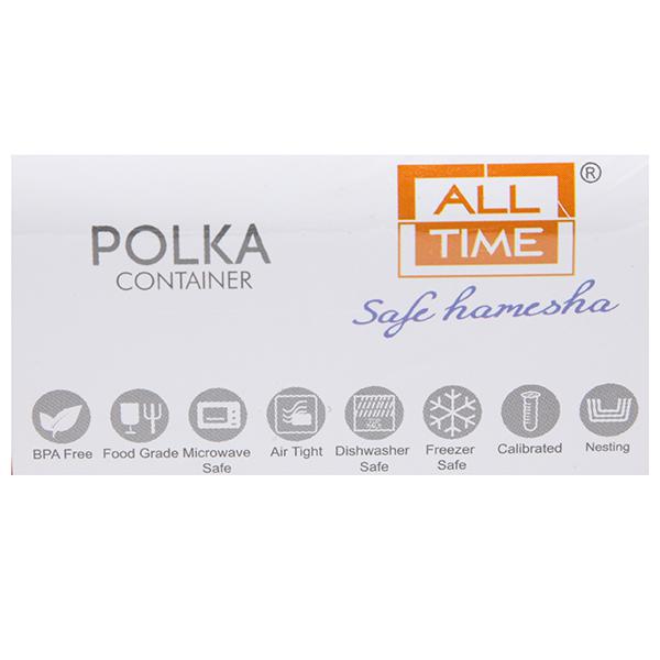 All Time Polka Container is stylish, lightweight and versatile. It is calibrated for easy measurement and easy to store. It has been designed in a modular manner and are perfect for fridge or ambient storage.
