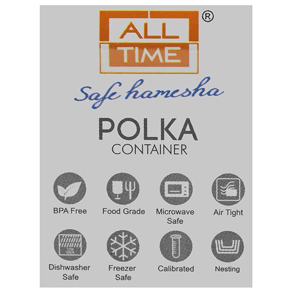 All Time Polka Container is stylish, lightweight and versatile. It is calibrated for easy measurement and easy to store. It has been designed in a modular manner and are perfect for fridge or ambient storage.