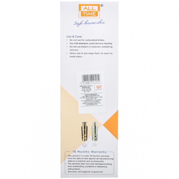 Keep your favourite beverage hot or cold longer on the go with All Time VF 001 Vacuum Flask. It comes with 3 layer of insulation and unique vacuum technology which ensures long lasting temperature retention of beverage. It is 100% rust free and leak proof.