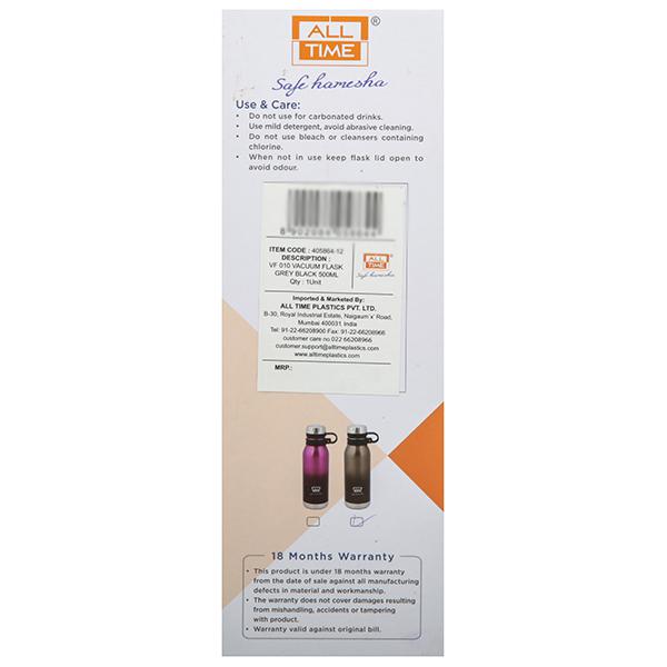 Keep your favourite beverage hot or cold longer on the go with All Time VF 010 Vacuum Flask. It comes with 3 layer of insulation and unique vacuum technology which ensures long lasting temperature retention of beverage. It is 100% rust free and leak proof.