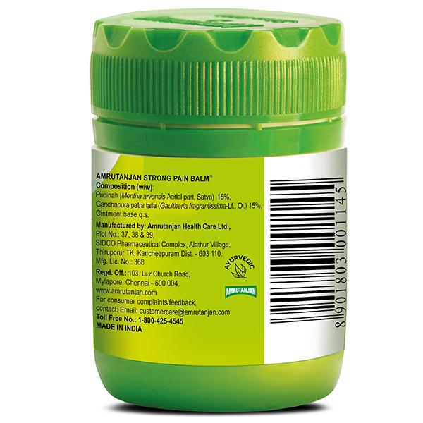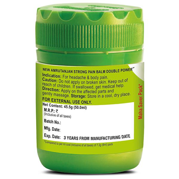 Product Information - Amrutanjan Double Power Strong Balm: Headaches and back pain tend to disrupt simple activities during the day making the person groggy and irritable. Such strong headaches & back pain call for an even stronger balm that puts it to rest the moment it is applied. Amrutanjan Strong Pain Balm is made to eliminate such severe headaches and back pains with its infusion of wintergreen oil and menthol is the perfect solution to your splitting pain. The balm accompanied with a massage gives you incredible relief within minutes. So no matter how demanding our job is you can always rely on Amrutanjan Strong that removes your headache or back pain.