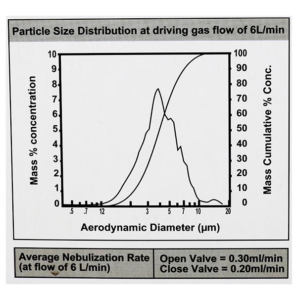 • Mass Median Aerodynamics (MMAD) is 4 µm at 6-8 LPM Litre Flow Range.