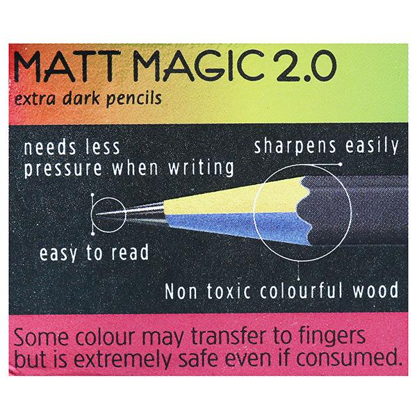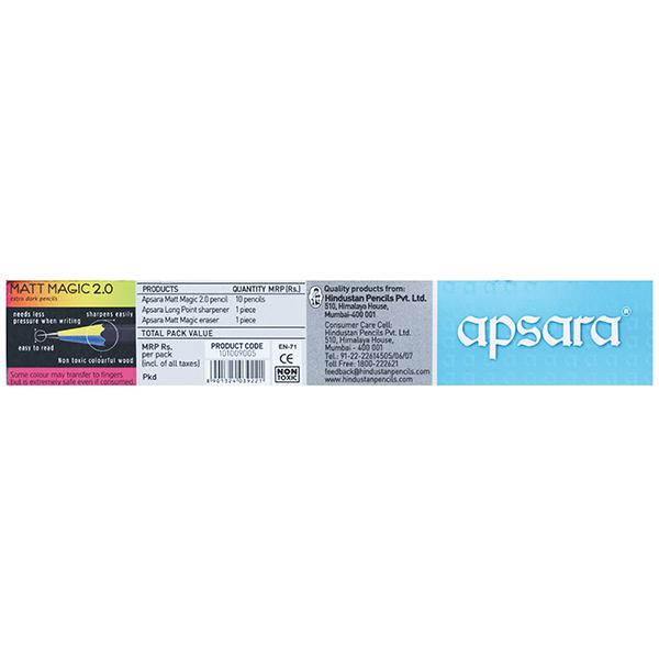 Product Information - Apsara Matt Magic Pencil is made from well-treated and high-quality wood and leads to making them soft, long-lasting and easy to sharpen. Its super dark lead needs less pressure when writing and stays dark for a long time. These pencils have a matt black coating and bright colour wood on the inside. It is ideal to use for writing and drawing in school or at home.