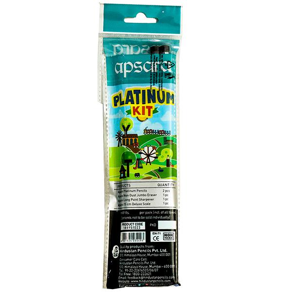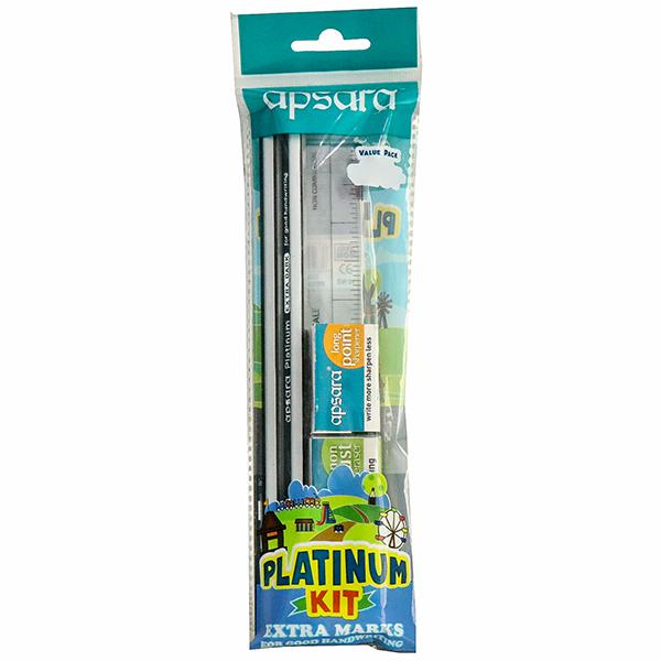 Product Information- Apsara Platinum Kit is a perfect value kit that comes in a convenient pack. It is a perfect kit with assorted products suitable to gift your children, their friends or students. The kit contains a pencil, eraser, sharpener and ruler. This pack is specially designed for better handling.