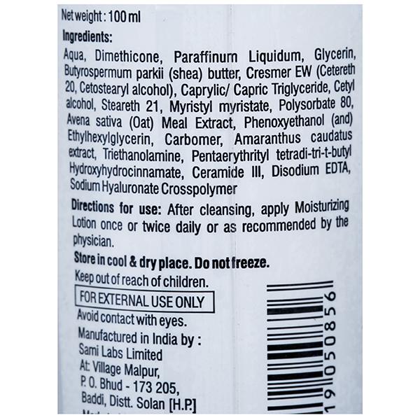 Aqua, Dimethicone, Paraffinum Liquidum, Glycerin, Butyrospermum parkii (shea) butter, Cresmer EW (Cetereth 20, Cetostearyl alcohol), Caprylic/Capric Triglyceride, Cetyl alcohol, Steareth 21, Myristyl myristate, Polysorbate 80, Avena sativa (Oat) Meal Extract, Phenoxyethanol (and) Ethylhexylglycerin, Carbomer, Amaranthus caudatus extract, Triethanolamine, Pentaerythrityl tetradi-tri-t-butyl Hydroxyhydrocinnamate, Ceramide III, Disodium EDTA, Sodium Hyaluronate Crosspolymer