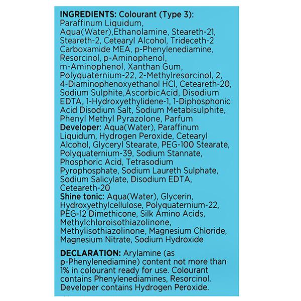 Quantity – 50g(Creme Colourant) + 50g (Developer) & 8ml (Shine Tonic)