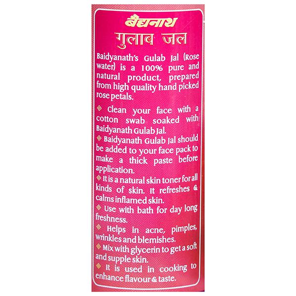 Product Information - Baidyanath Gulab Jal (Rose water) is high quality premium rose water. It is a natural toner for all skin types. It refreshes skin and eyes. It can be mixed with face pack and applied on skin. Baidyanath Gulab Jal helps in hydrating, revitalizing and moisturizing the skin giving it a refreshed look. The anti-oxidant properties of rose help to strengthen skin cells and regenerate skin tissues. It helps in acne, pimples, wrinkles and blemishes. It also helps in keeping fine lines and wrinkles at bay.