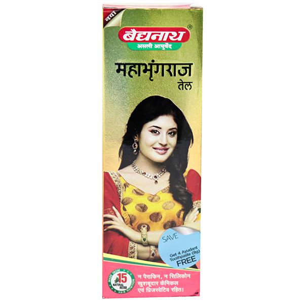 Mahabhringaraj Tel is a herbal oil used in Ayurvedic treatment for hair fall, headache, neck pain and stiffness, eye and ear diseases. It improves hair strength and promotes hair growth.
