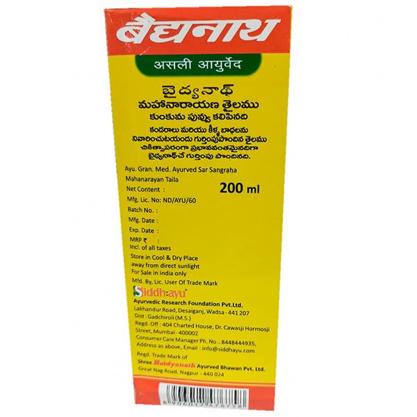 Baidyanath Mahanarayan Tel is herbal and Ayurvedic oil. It is used to treat paralysis, arthritis, and different types of eye diseases. This oil is for external application and is also effective in ayurvedic therapies.