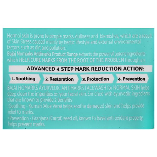 Bajaj Nomarks Ayurvedic Antimarks Facewash for Oily Skin helps clean excess oil, dirt, and grime. It also unclogs pores which are fertile ground for acne-causing bacteria. Enriched with ayurvedic ingredients, it extracts the power of potent ayurvedic ingredients and helps cure marks from the root of the problem through the two step of the advanced four step mark reduction action i.e. soothing and prevention.