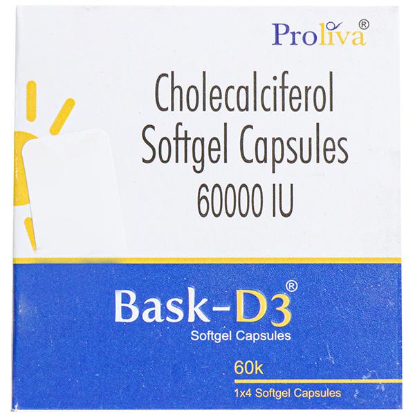 Each soft-gelatin Bask D3 60 K capsule contains Cholecalciferol 60000 I.U. (Vitamin D3) and Excipients q.s.