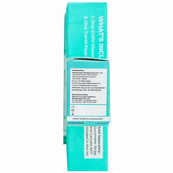 1 N Type C USB connected Glucometer, 1 N Lancing Device, 1 N Waterproof Travel Pouch, 1 N User Manual, 50 Curv Glucometer Test Strips and 50 Lancets.