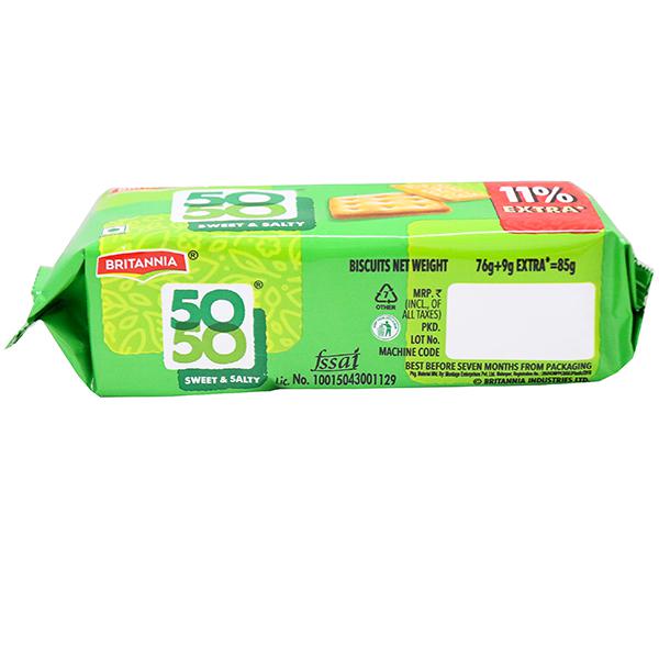 Product Information:- Britannia 50-50 Timepass Salted Biscuits are a classic salty biscuits. Golden brown colour, these biscuits are delicious and flavoursome to snack on. Britannia biscuits, cookies, cakes and rusk are a perfect companion for your tea. Believing in delivering fresh and healthy products, Britannia India manufactures some of India's favourite brands like Good Day, Tiger, NutriChoice, Bourbon, Milk Bikis and Marie Gold.