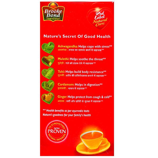 Product Information - Red Label Natural Care is from the house of Brooke bond and the brand Red Label. Red Label Natural Care Tea contains the goodness of *5 Natural Ingredients - Cardamom, Ginger, Tulsi, Mulethi and Ashwagandha that enhance immunity, improving your body's natural defence and helping you fall ill less often
