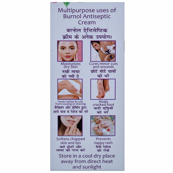 Burnol Antiseptic Cream is a preventive, curative, and healing ayurvedic medication recommended for dry skin diseases, rashes, cuts, scratches, minor burns, minor burns, wounds, cold sores, chapped skin, furuncle, impetigo, intertigo, etc.