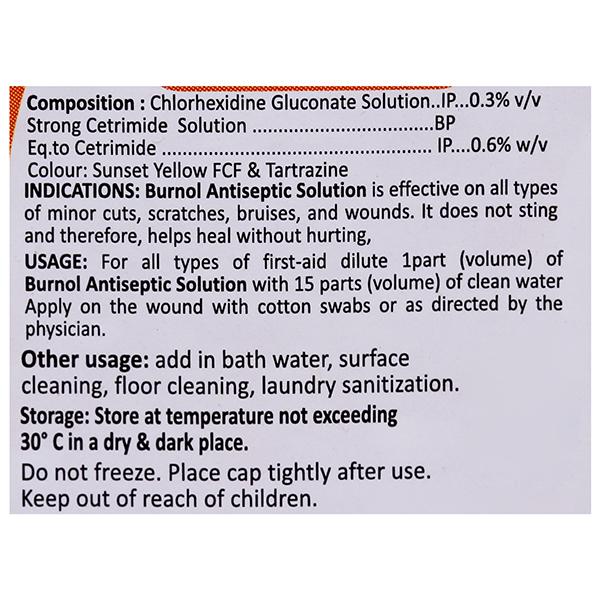 Product Information - Burnol Antiseptic Solution is effective on all types of minor cuts, scratches, bruises and wounds. A Multi Purpose Solution to All Infections and Germs.