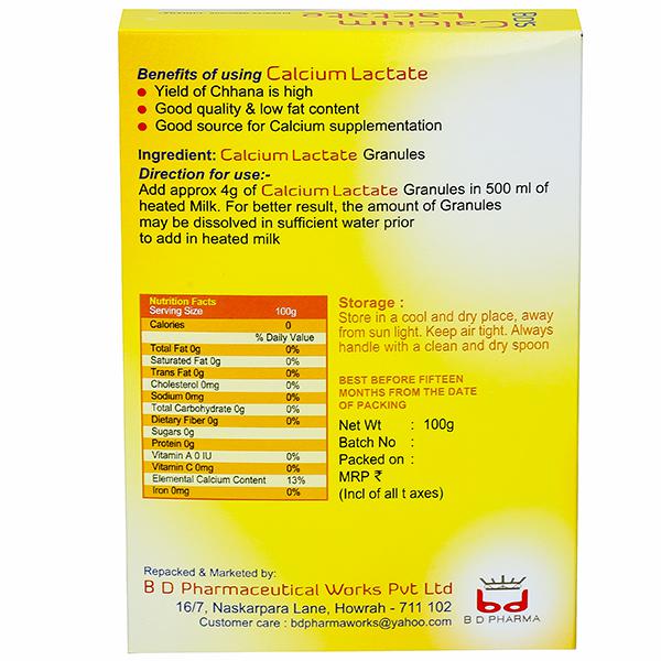 Calcium Lactate (BDS) is a good source for Calcium supplementation. It ensures higher production of chhana. It is good quality & low fat content.