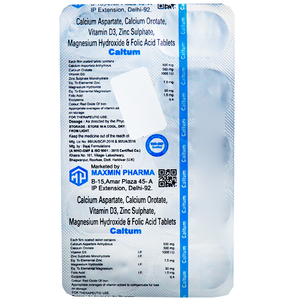 Calcium Aspartate 500mg + Calcium Orotate 500mg + Vitamin D3 1000IU + Elemental Zinc 7.5mg + Elemental Magnesium 50mg + Folic Acid 1.5mg