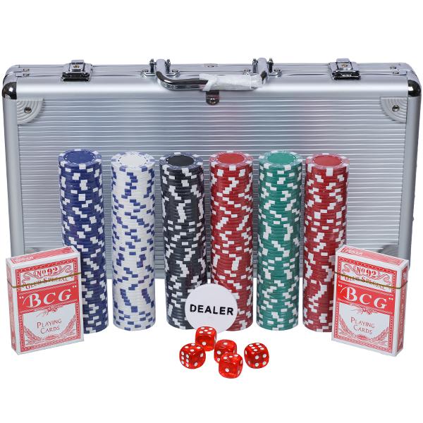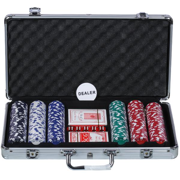 2) 300 Good quality poker-chip set + 5 dice+ dealer token + playing cards +