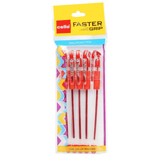 Product Information - Cello Faster Grip Red Ball Pen allows you to write fast and long with fast-flo tip, Comfortable Grip, Smudge-free writing and an attractive body design.
