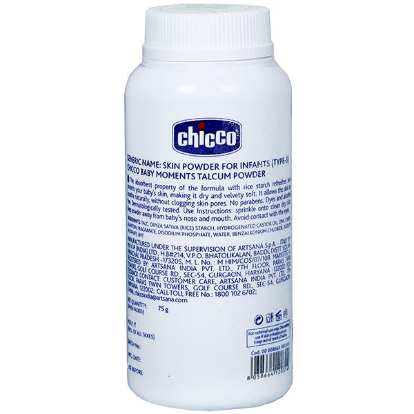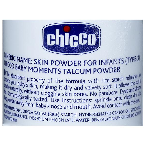 Chicco baby moments Talcum Powder with natural Rice starch to protect baby's skin