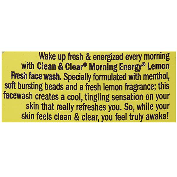Feel lazy, sleepy and low on energy every morning? Now wake up fresh and full of energy with Clean & Clear Morning Energy Lemon Fresh Face Wash. It’s cooling menthol, bursting beads and a fresh lemon fragrance will make you feel truly awake while leaving your skin clean and clear.