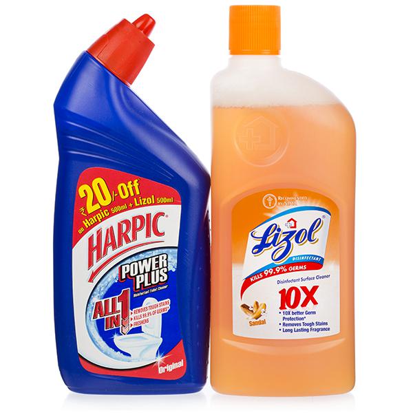 Quantity - 1000 ml (Harpic Original Toilet Cleaner 500 ml & Lizol Citrus Surface Cleaner 500 ml)