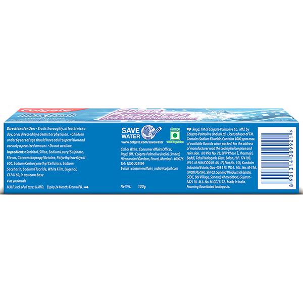 Colgate MaxFresh Blue gel toothpaste is infused with cooling crystals (in strips), which dissolve completely as you brush for a whole new dimension of freshness - freshness that you can see and feel all day long. It contains menthol for fresh breath and freedom from mouth odour. MaxFresh also gives you whiter teeth while fighting cavities and germs. Use it twice everyday for energizing your mouth. It comes in a 150gm tube.