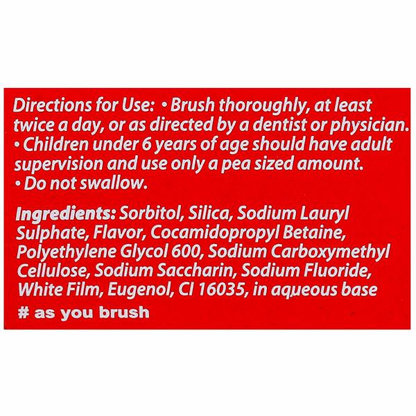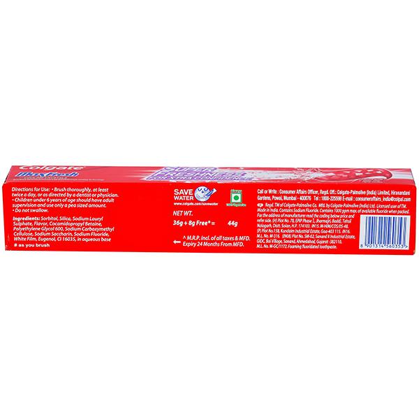 Product Information - Colgate MaxFresh Spicy Fresh Gel Toothpaste comes with cooling crystals which help in keeping you refreshed for a long time. Experience intense cooling and a refreshing blast of flavor to transform your day and fight cavities at the same time. The clear red gel toothpaste also whitens your teeth with every brush, so you can smile with a never before confidence! Colgate MaxFresh Spicy Fresh Gel complete protection against germs and plague build-up.