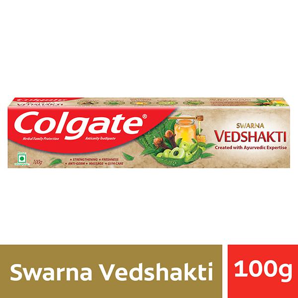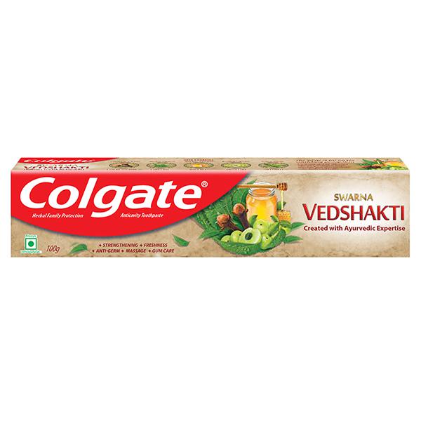 Product Information - Colgate swarna vedshakti is created with ayurvedic expertise. Contains the goodness of lavanga, nimba, madhu, amalaki, tulasi, karpoor, pudina, mishreya, twak, yavanika, kumari. Colgate swarna vedshakti protects against multiple common teeth and gum problems and promotes good oral health.