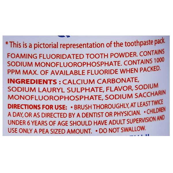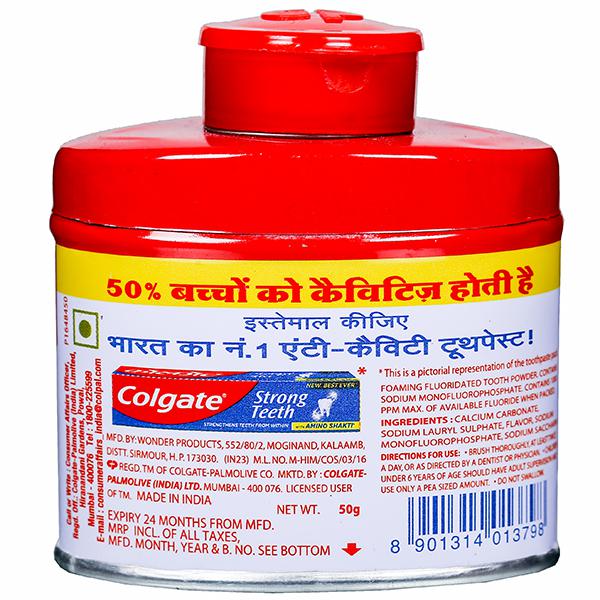 Colgate Toothpowder with Calcium & Minerals ensures complete oral care delivering healthy gums, all-around germ protection, plaque removal & a whiter smile. The calcium and mineral-rich formula keep teeth healthy and strong.