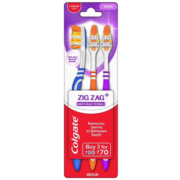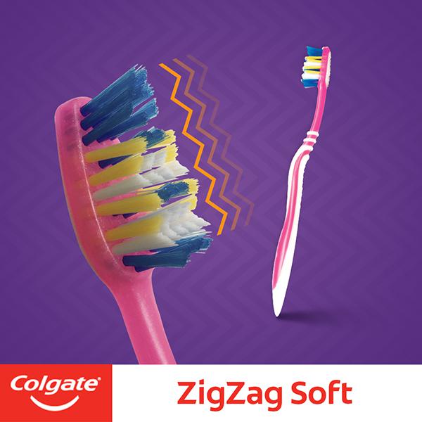 Product Information - Colgate Zigzag + Anti Bacterial Soft Toothbrush comes with multi-angle zig zag bristles designed to reach deep between teeth to effectively remove plaque. The rubber cushioned handle provides comfortable grip & superior brushing control. This Toothbrush comes with unique circular pattern soft bristles that help remove tooth stains, leaving you with a shining smile and clean gums. Its flexible neck reduces pressure on gums and massages them for a comfortable cleaning experience.