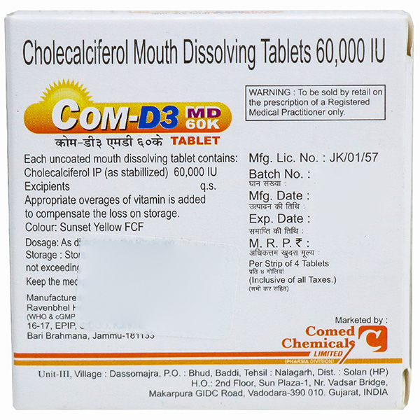 Com D3 MD (Orange Flav) Sugar Free 60K Tablet (4 Tab)