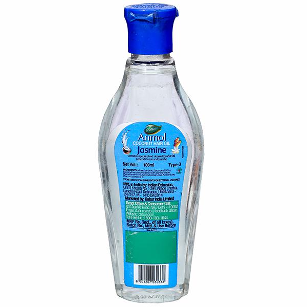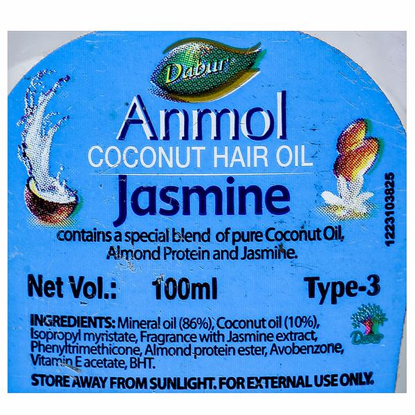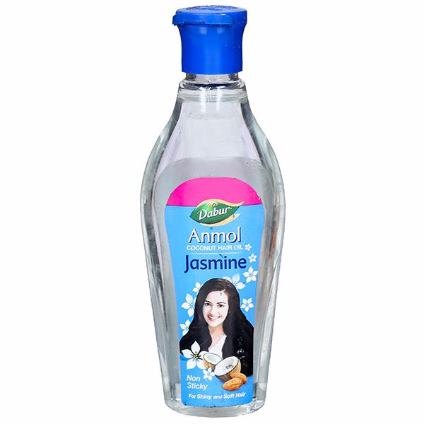 Dabur Anmol Jasmine Coconut Hair Oil gets you the privy nourishment of genuine coconut oil that works its magic on dry, dull and damaged hair. It sets the pace with deep scalp care, protecting and building healthy hair roots to give your hair that halo of a glow.