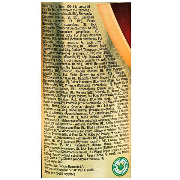 Dabur Dashmularishta is nutritional syrup for females primarily for recuperation from post- delivery weakness.