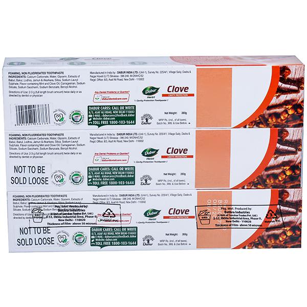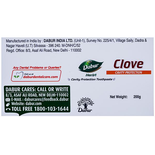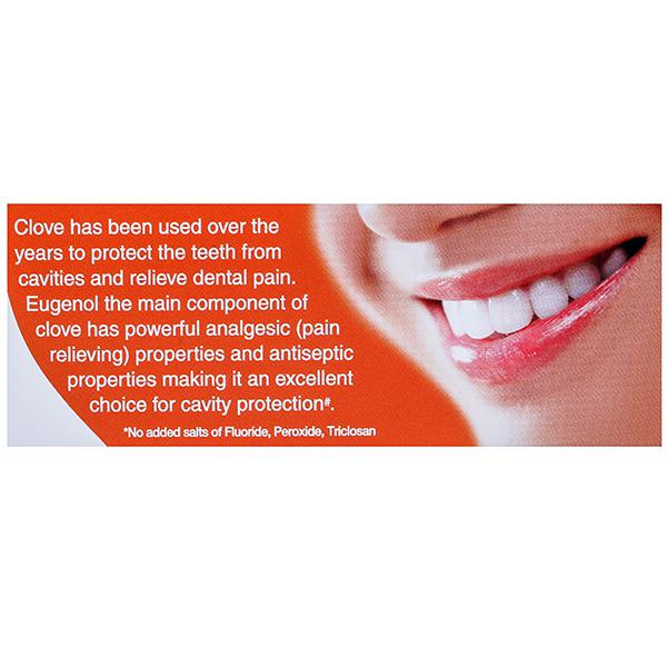 With over 130 years of Herbal expertise, Dabur has always been committed to the health and well-being of every household. In keeping with this motto, Dabur Herb'l range of toothpastes have been specially formulated for those consumers who are looking for natural solutions for their various oral care needs. Dabur Herb'l Clove Toothpaste has been formulated with the goodness of nature's wonder herb Clove, which has been used over the years to protect the teeth from cavities and relieve dental pain. Eugenol, the main component of Clove has powerful analgesic (pain relieving) and antiseptic properties making it an excellent choice for cavity protection. Dabur Herb'l Clove Toothpaste's Fluoride & Paraben free formulation has been specially crafted to ensure that you have a pleasant mouthfeel post brushing, so that you can begin your day on just the right note.