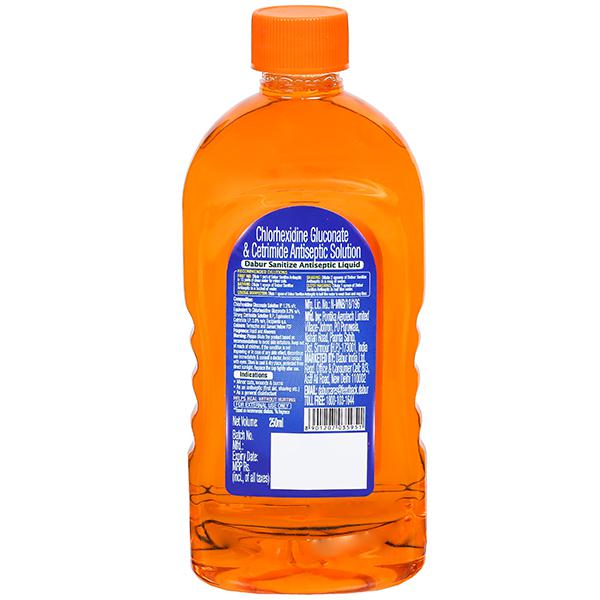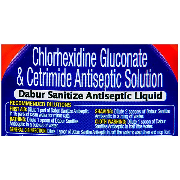 Dabur Sanitize Antiseptic Liquid is used as an antiseptic agent that prevents the growth of bacteria, fungi and viruses as well. Dabur Sanitize Antiseptic Liquid protects against infection, prevents bacterial growth and can also be used as a normal disinfectant. Dabur Antiseptic Liquid is only meant for external use and for users who suffer from skin disease such as eczema should avoid using it. Can be used to disinfect household items and surfaces.