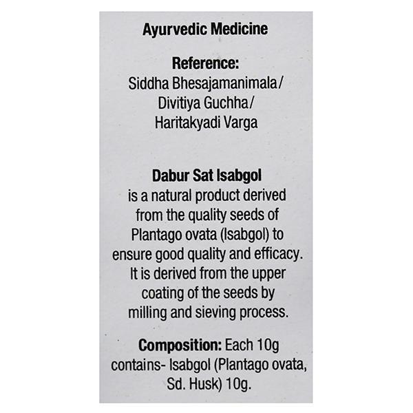 Dabur Isabgol is a powdered Pysillium-based natural laxative for relief from constipation. It is a specially formulated, triple refined admixture of Isabgol and select adjuvants.