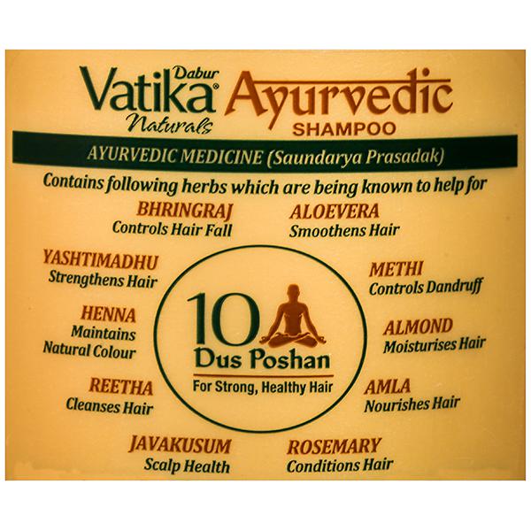Product Information - Do you feel that your hair has gotten more damaged over time and have become weaker ? The solution lies in Ayurveda. Presenting the new Dabur Vatika Ayurvedic Shampoo – with the goodness of 10 natural ingredients, which gives your hair 48% higher damage protection & makes them 23% stronger. Its 10 Ayurvedic ingredients are known to cure 10 different hair problems, giving you strong and healthy hair.
