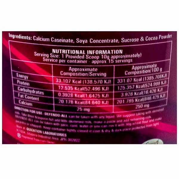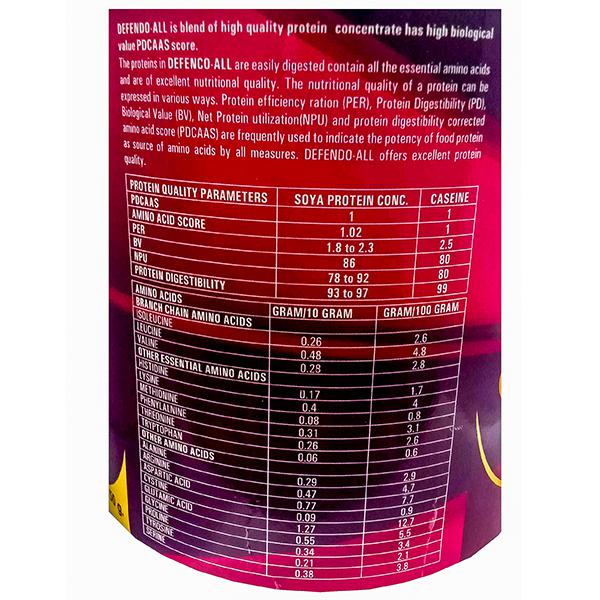 Product Information:- Provides Quality and Quality Protein Defendo-All: - Helps in Gestational Weight Gain - Promote Mothers Health & Reduce Risk of SGA Birth - Reduce Post Delivery Problems (Fattiness) - Protein is essential for development of Healthy Child - It helps in FOLLICULAR TEST & FREE FROM LACTOSE - It helps in BREAST FEEDING - Hair Loss is a Big Problem (Skin, Hair & Nail made up of PROTEIN) Defendo-All provides protein for Skin, Hair & Nail problems. Steroids need co-prescription of Protein Surgery: Defendo-All helps in all type of NEGATIVE NITROGEN LOSS during any type of Surgery & Replace the Additional Daily Loss in Sepsis and Trauma. AGEING PATIENTS: Body stop the synthesis of protein, for essential and non-essential protein body requires as supplements. Defendo-AII fulfill the requirement absolutely. Boost up the stamina and energy DEFENDO-ALL FOR CHILDREN: - Reduce obesity - Healthy Brain Requires Quality and Quantity Protein - We need additional proteins - It reduces white adipose tissue.Ideal For:- Mothers