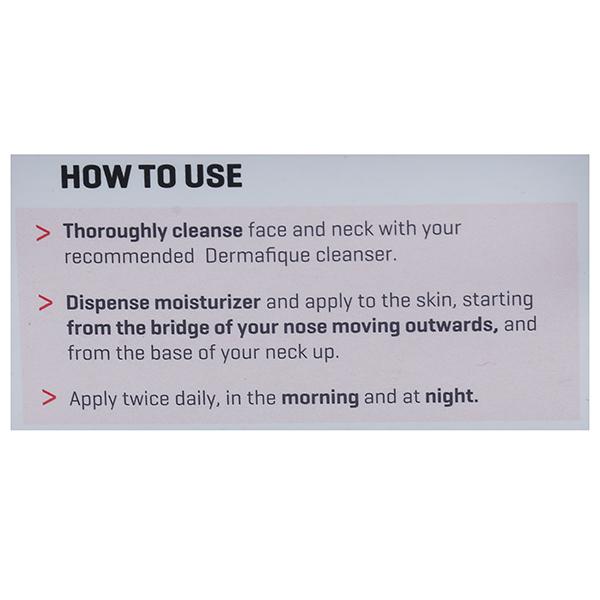 Thoroughly cleanse face and neck with your recommended Dermafique Cleanser. Dispense moisturizer and apply to the skin, starting from the bridge of your nose moving outwards, and from the base of your neck up.