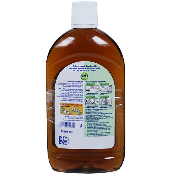 Liquid :Dettol Antiseptic Liquid protects you and your family from 100 illness causing germs. It comes in a fresh pine fragrance. The topical antiseptic liquid sanitizes your home and helps maintain your personal hygiene. The Dettol first aid antiseptic liquid can be used to protect against infection from cuts and scratches, disinfect toys, and sanitize baby wear leaving everything clean and fresh. It can also be used as a household disinfectant and cleaner on surfaces or in laundry cleaning to kill germs. This liquid antiseptic is recommended by Indian Medical Association and can be kept in your emergency first aid kit. USAGE: Recommended dilutions to protect your family from germs: Bathing – 5ml to a bucket of water (10 litres); First Aid- 15ml to 300ml of water; Shaving Antiseptic Liquid- 15ml to 300ml of water; Nappy Wash – 12.5ml to 500ml of water.