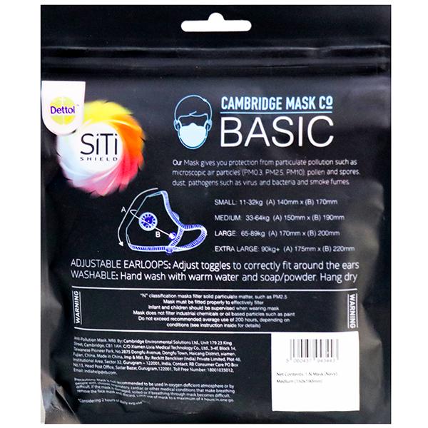 Dettol Siti Shield N95 Mask is a reusable mask that ensures protection from particulate pollution such as microscopic air particles (PM 0.3, PM 2.5, PM 10) pollen and spores, airborne irritants, dust, smoke fumes, harmful pathogens such as viruses and bacteria.