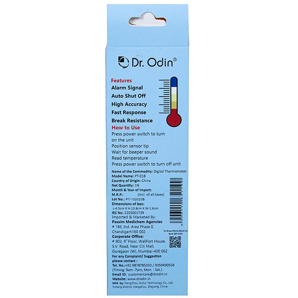 Product Information - The Dr Odin Digital thermometer is available for oral, rectal and armpit use. The precision is accurate and is easy for adults and kids to use, with a 10-second beep sound when flashing stops. When the temperature reaches 100?(37.8?), the alarm beeps more rapidly.With our Digital Thermometer, you can feel a total peace of mind knowing that you are getting the most accurate temperature readings for your whole family. Optional temperature unit & memory function Temperature unit in Celsius and Fahrenheit are both available according to your habit. Press the switch for a while when turning on the product to change the temperature unit. The last record temperature will be displayed in LCD when turn on the product. Reliable material The Dr Odin thermometer is approved by FDA. The material is reliable and eco-friendly for users, especially for little children to take daily body temperature. Auto shut-off This product will shut off automatically when there is no operation within 1 minute for energy saving. The battery life is about 200 hours for long-time use. High durability & break resistance Waterproof design at the grade of IP22 and dustproof design means you can use the thermometer hygienically and store easily.
