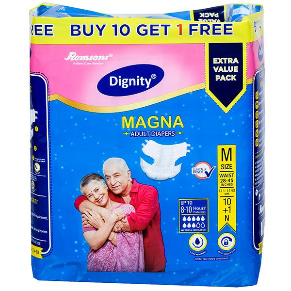 Dignity Magna Adult Diapers M (Buy 10 Get 1 Free) Pack Of 11